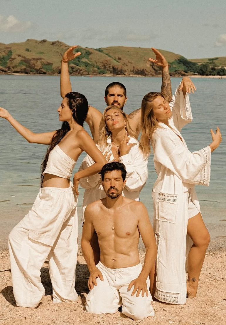 Meine Philosophie: Jedes Kleidungsstück verkörpert die Verbindung von Körper, Geist und Natur. Ich arbeite ausschließlich mit natürlichen Materialien und fairen