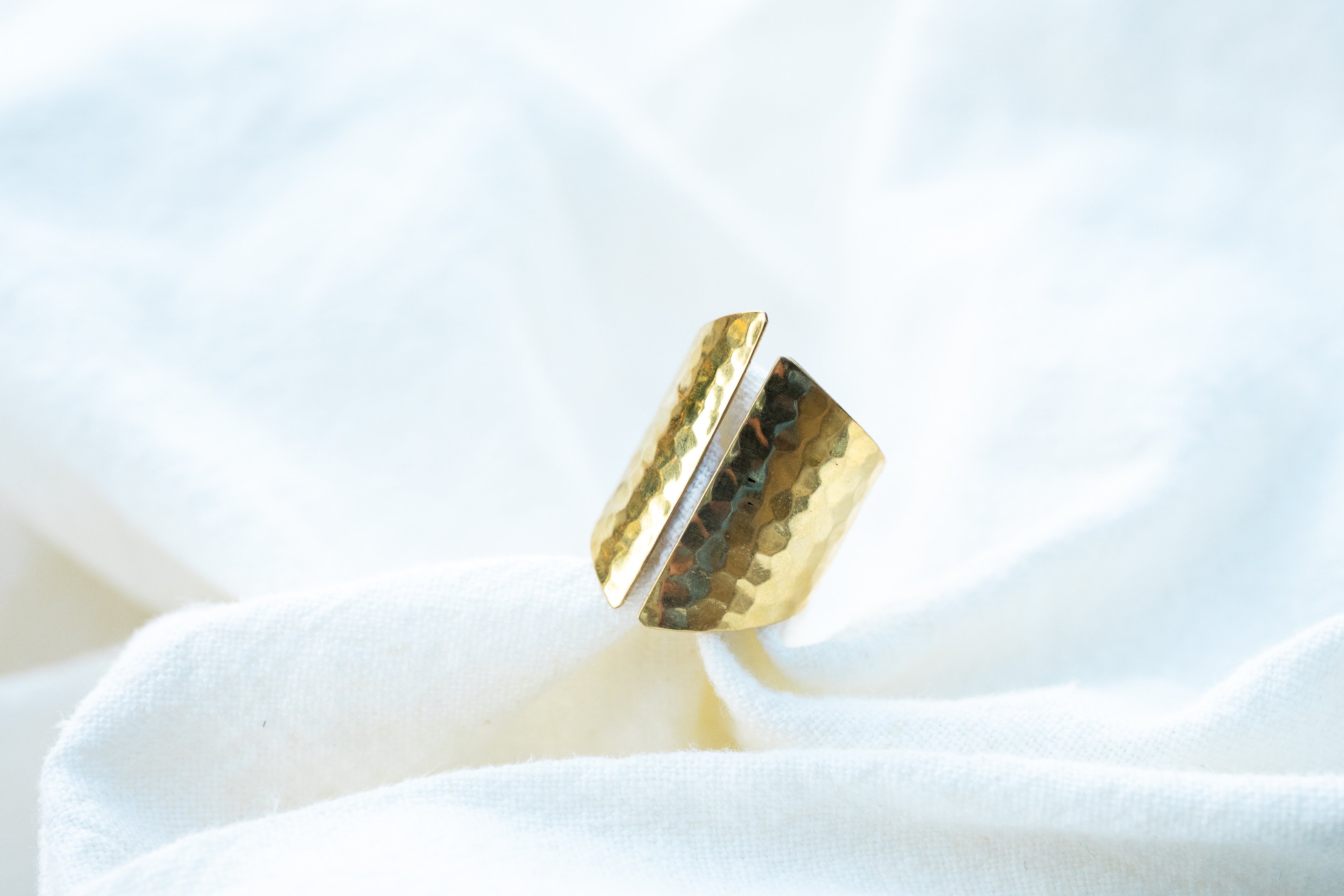 Dieser Ring aus 100% Messing vereint Stärke und Schlichtheit – roh, natürlich und doch elegant.