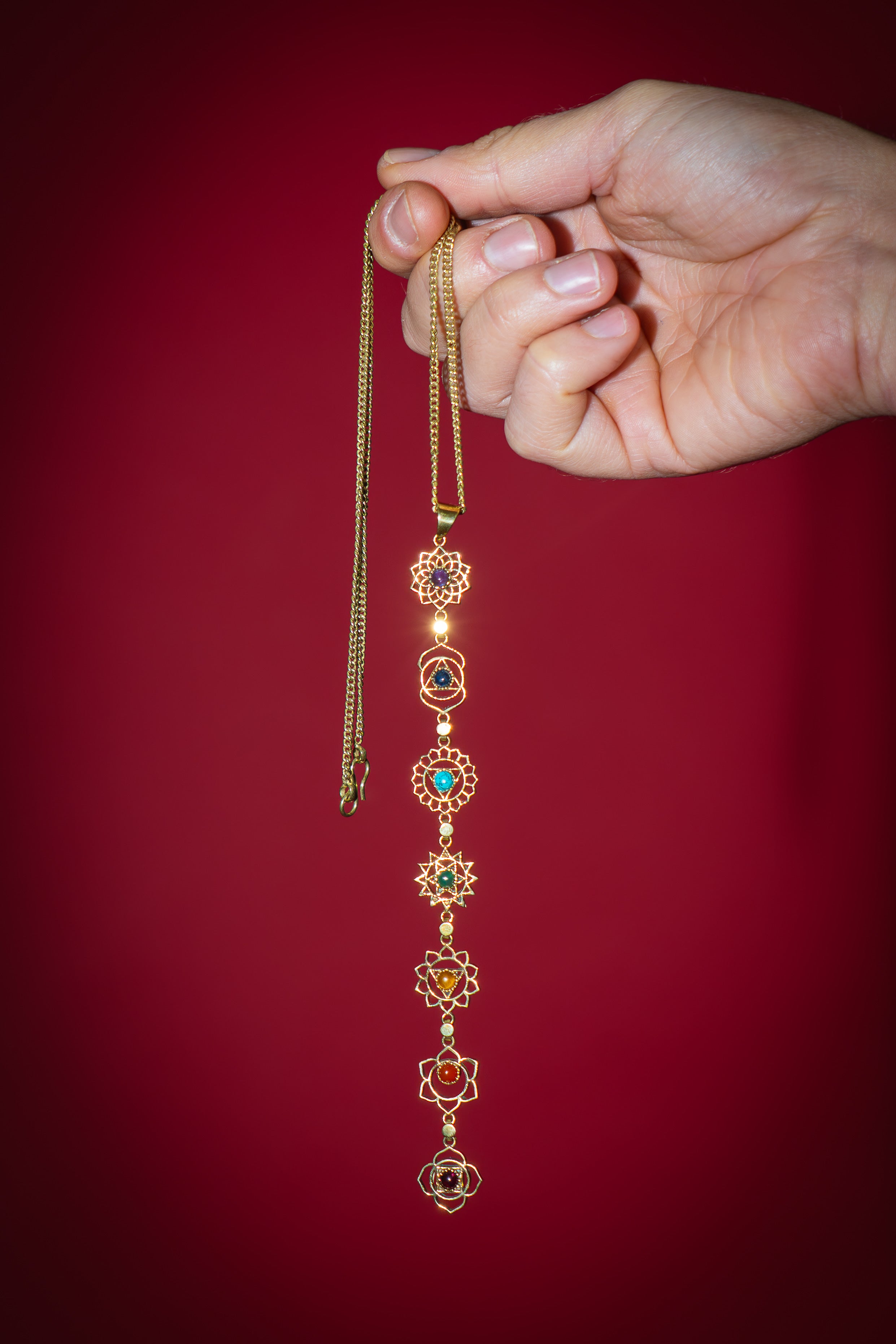 Jedes einzelne Chakra wird durch einen echten Edelstein repräsentiert, der die jeweilige Energie stärkt und in Einklang bringt.