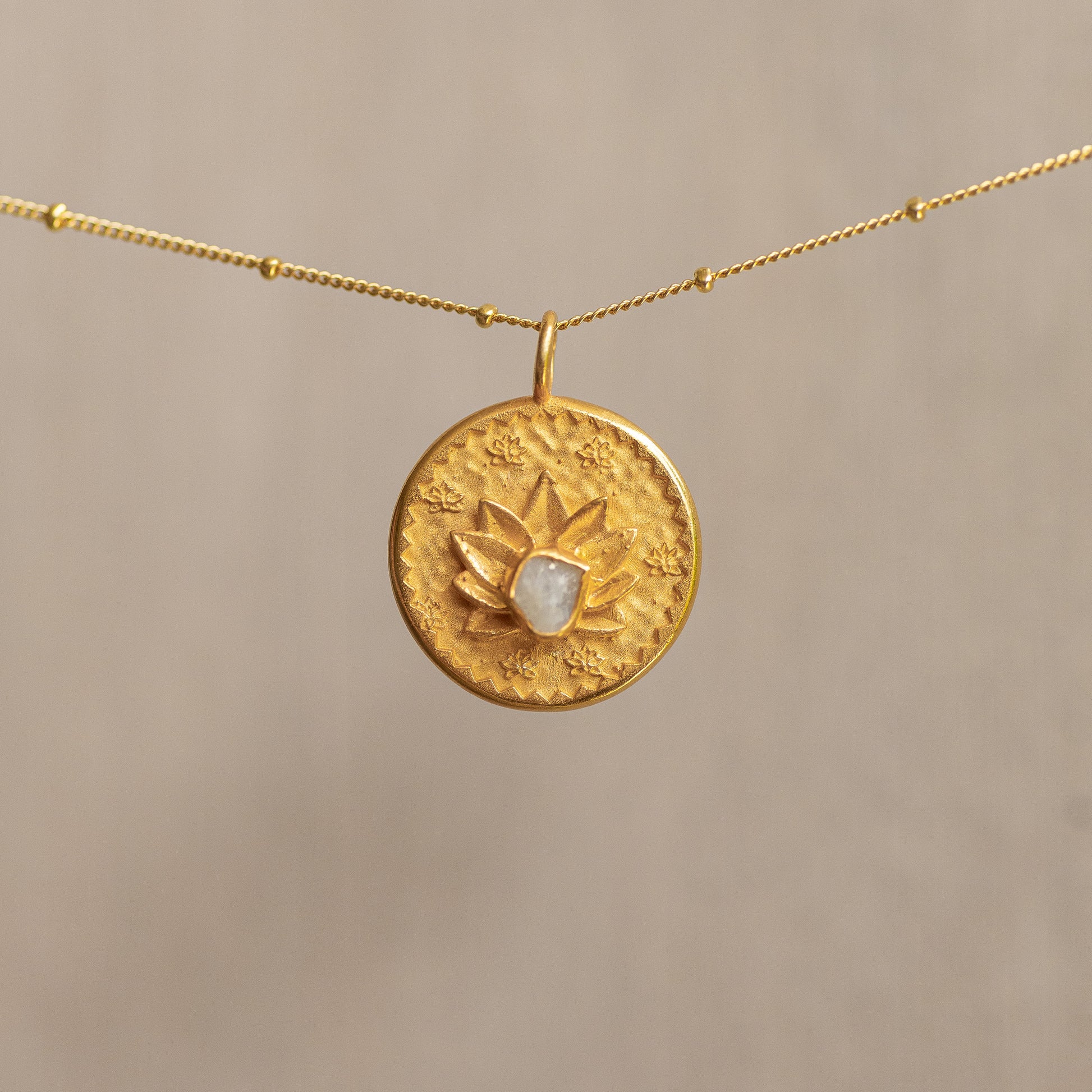 Gefertigt aus 925 Sterling Silber und veredelt mit feinstem Gold Vermeil (17 Karat, 10-fach vergoldet), trägt dieses Medaillon eine zarte Gravur auf der Rückseite:
