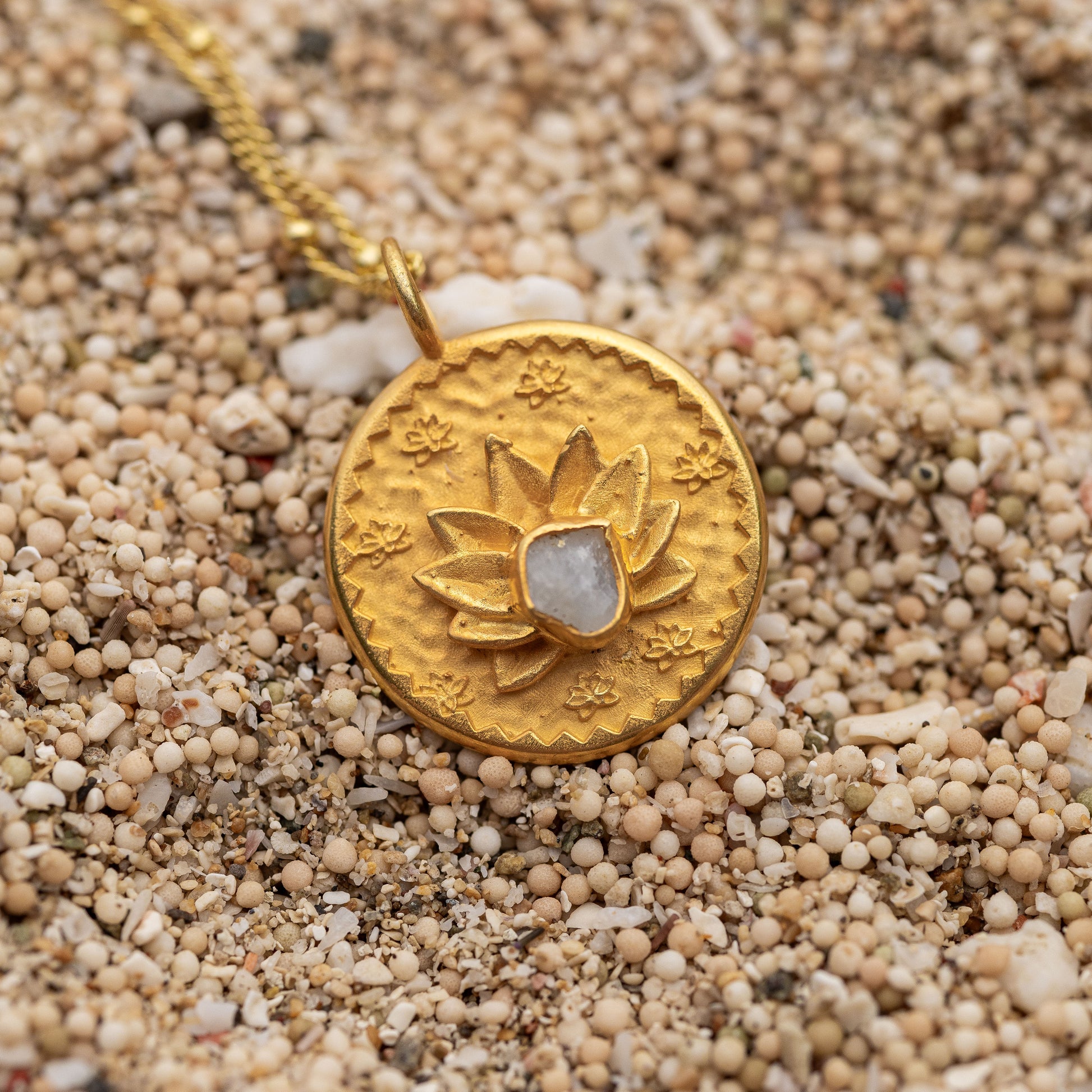 Das Crown Chakra Medaillon steht für die Verbindung zum Höheren Selbst – für das Vertrauen in das Unsichtbare, die Weite des Bewusstseins und die Erkenntnis, dass alles miteinander verbunden ist.