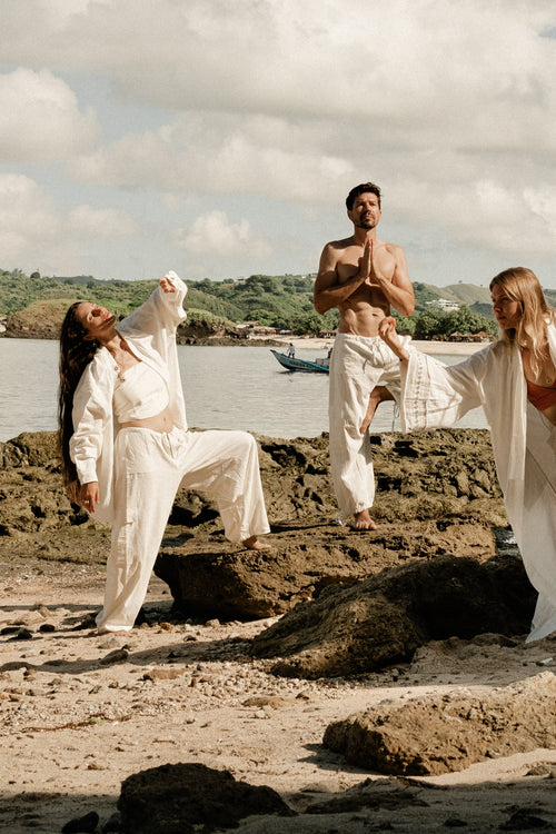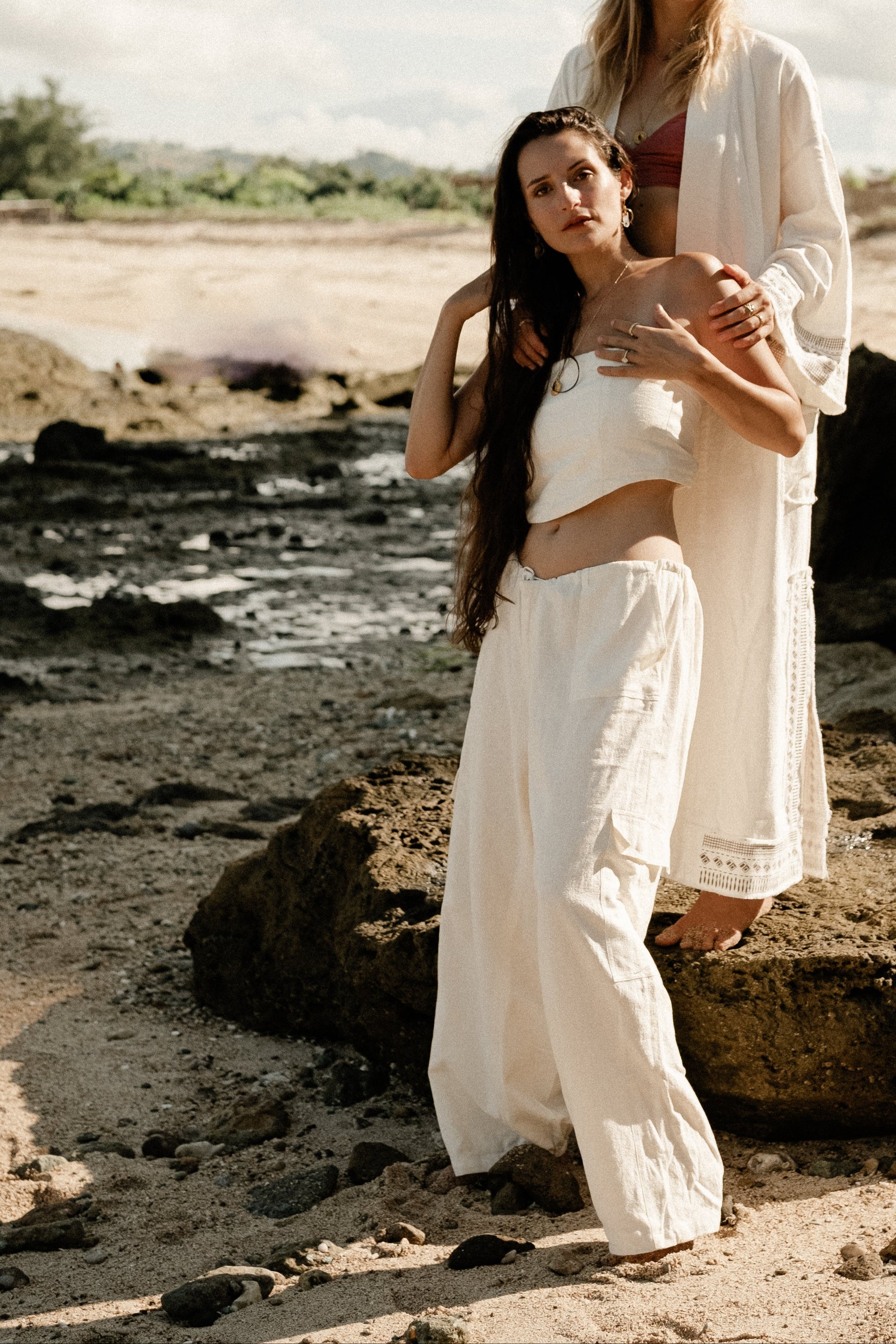 Die Nahala Pants sind weite, fließende Unisex-Hosen aus reinem Leinen. Mit ihrem