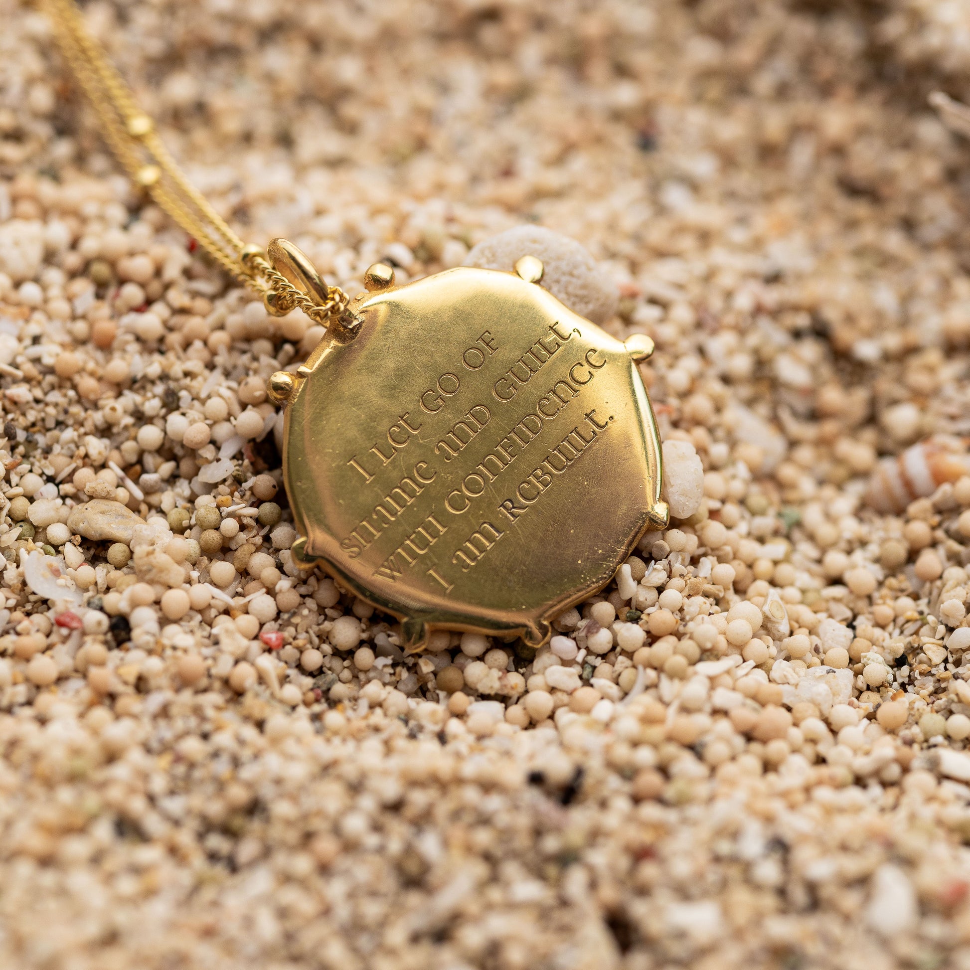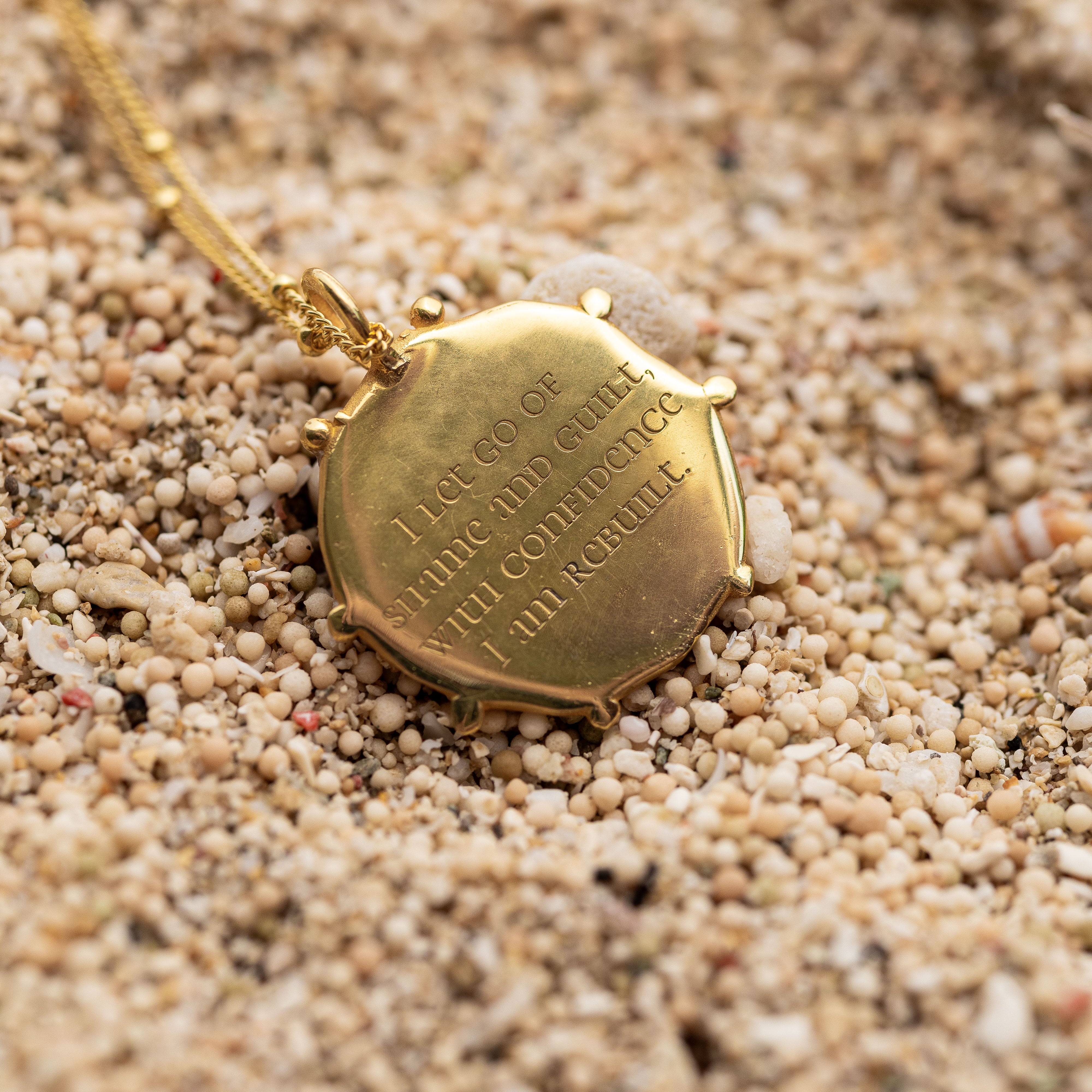 • Rückseitige Gravur: „I release all shame and guilt, with confidence I am rebuilt.“