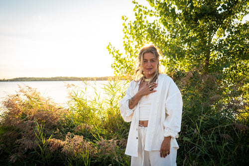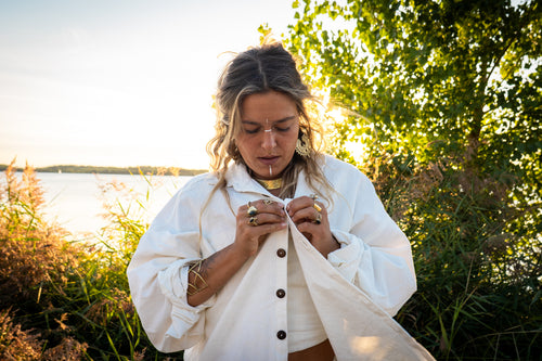 Das Sun Veil Shirt ist ein leichter Klassiker – Oversize geschnitten, aus reinem Leinen und mit Knöpfen aus recycelten Kokosschalen. Natürlich, schlicht und zeitlos.